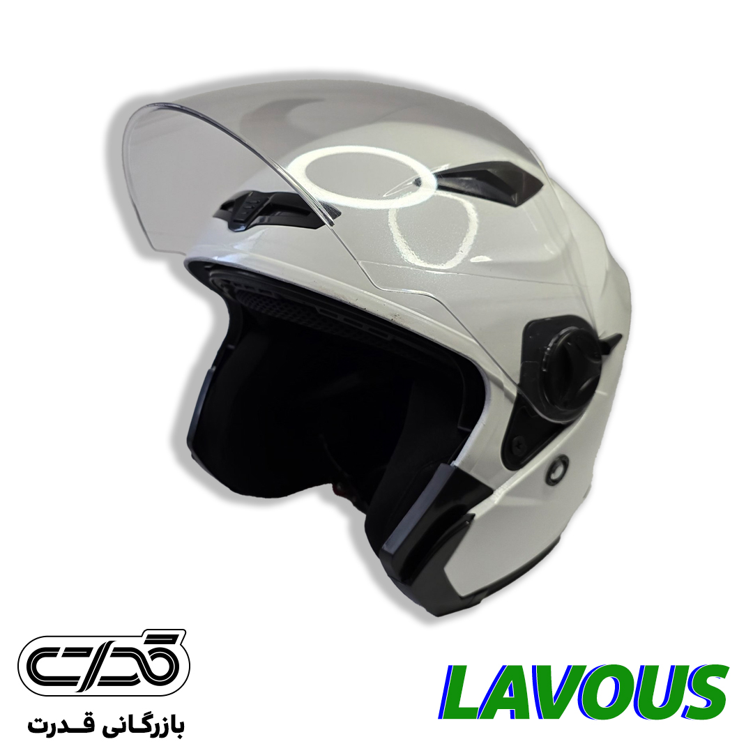 کلاه کاسکت لاووس مدل بدون فک رنگ سفید براق ( عینک دار )